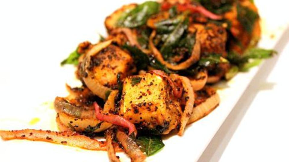 Paneer is a fresh cheese common in South Asian cuisine. It is an unaged, acid-set, non-melting farmer cheese or curd cheese made by curdling heated milk with lemon juice, vinegar, or any other food acids. Its crumbly and moist form is called chhena in eastern India.